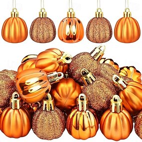 24 peças de enfeites de abóbora pendurados para Halloween, mini enfeites de bola de Ação de Graças de outono, bolas de abóbora pintadas à mão de 3 cm para árvore de Natal, guirlanda, centro de mesa ou