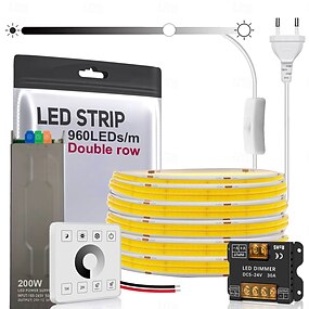 Fita de LED COB ultrabrilhante de 24V com duas fileiras, 2,5 m x 5 m, luz branca quente natural, CRI 95, 960 LEDs/m, 190W, de alta densidade, com controlador e fonte de alimentação opcionais para uso