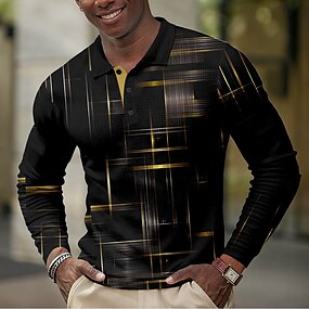 Homens Estampa Geométrica Camisas Polo Waffle Manga Curta Camisas polo Camisas de colarinho Business casual O negócio Roupa Esportiva Traje de festival Impressão 3D Botões Verão Preto