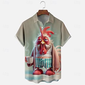 Homens Animal Galo Camisa Social camisa de verão camisa de botão Manga Curta Engraçado Ao ar livre Férias Dia a Dia Verão Primavera Aberto para a Lateral Impressão 3D camisas de colarinho Um bolso