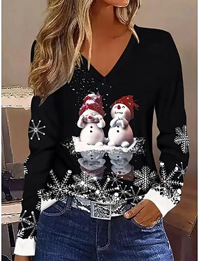 Camiseta Feminina de Natal Graphic Vintage Estilosa Clássica Manga Longa Decote em V Tops Regulares Impressão Diária Cinza Vermelho Preto+Branco+Vermelho Vinho Verde Escuro Primavera Outono Inverno