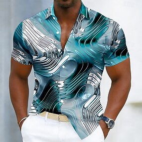 Homens Geométrica Arte Líquida Abstrata Camisa Social Camisa casual camisa de botão Manga Curta Moda Casual Streetwear Férias Feriado Verão Primavera Aberto para a Lateral Impressão 3D camisas de