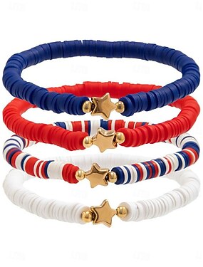 Com Miçangas Chique Formato de Letras Moda Personalizada Cerâmica Pulseira de jóias Azul / Vermelho Para Diário Presente Feriado