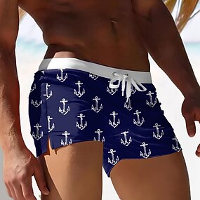 Homens Náutico Âncora Calção Justo de Natação Shorts de Natação Bermuda de Surf Cintura Média Estampa 3D Havaiana Surf Feriado Praia Com Cordão com forro de malha Cintura elástica Designer Roupa