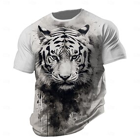 Homens Lobo Tigre Camiseta Manga Curta Camiseta Impressão 3D Gola Redonda Camisa Moda Designer Rua Diário Esportes Preto Branco Cinzento Verão Primavera Roupa S M L XL 2XL 3XL