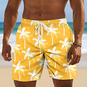 Homens Coqueiro Plantas Tropicais Calção Justo de Natação Shorts de Natação Bermuda de Surf Cintura Média Havaiana férias na praia Bolsos laterais Forro de malha Cintura elástica com cordão Designer