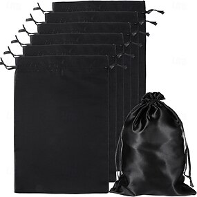 Conjunto de 10 sacos para perucas com cordão de cetim, sacos de seda preta para guardar várias perucas, extensões e apliques de cabelo.