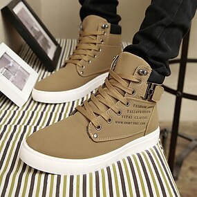 tênis masculino de cano alto bege com design de cadarço e detalhes de fivela para uso casual e streetwear