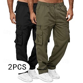Homens Calças Cargo Calça cargo Calças Bolso multi Tecido Vestível Ao ar livre Casual Diário Moda Clássico Amarelo do exército Preto
