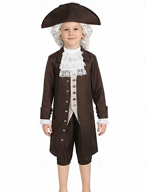 250º Aniversário EUA Rococó Barroco Roupa Manga Comprida George Washington Colonial Guerra Revolucionária Fantasia Para Meninos Carnaval Dia da Independência 4 de julho Crianças Casaco Calças Colar
