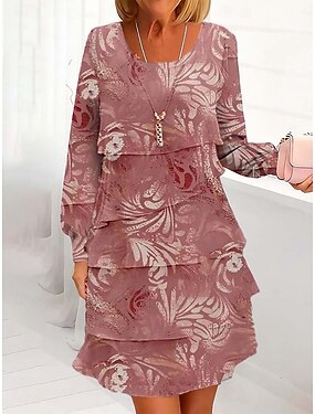 Linha A Tubinho Curto Mini Vestido de Derby Vestido formal Elegante Manga Longa Gola Redonda Formal Kentucky Derby Chiffon com Bloco de Cor