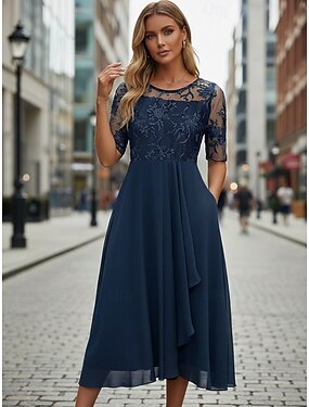 Duas Peças Terninho Longo Vestido Para Mãe dos Noivos Manga Curta Gola Redonda Elegante Formal Convidado do casamento Chiffon com Renda Bordado Babados em Cascata
