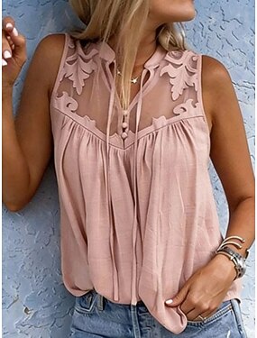 Mulheres Camisa Social Blusa Patchwork Tecido à moda Clássico Moderno Sem Manga Decote V Tops regulares Diário Feriado Para Noite Rosa Azul Real Cinza Claro Verão Primavera
