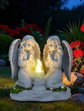 1 peça de luminária solar externa à prova d'água em resina representando um anjo rezando, ideal para decoração de jardins, caminhos e gramados. Estátua religiosa de anjo, perfeita para iluminação de