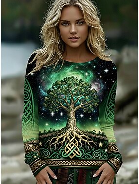 Dia de São Patrício Mulheres Camiseta Imprimir Côr Sólida Gráfico Boêmia Vintage Casual Manga Longa Gola Redonda Tops regulares Diário Final de semana Roupas de férias Verde Verão Primavera Outono