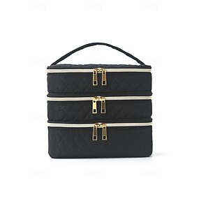 Organizador de maquiagem feminino em poliéster acolchoado, multicolorido, com grande capacidade e vários compartimentos, ideal para uso diário, férias e viagens.