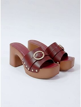 sandálias femininas de salto bloco com recortes estilo boho marrom – mules confortáveis casuais retrô para viagens de verão e uso diário