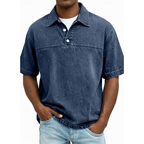 Homens Camisa jeans Camisa polo de algodão Casual Clássico Manga Curta Moda Básico Côr Sólida Estilo vintage Botões Verão Primavera Primavera & Outono Normal Preto Verde Claro Rosa Azul Marinha Verde