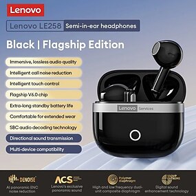 Fones de ouvido sem fio Lenovo, com chip Bluetooth 6.0 e estojo de carregamento, 35 horas de reprodução, áudio espacial imersivo de 360° com som panorâmico 3D, ideais para jogos, música e esportes.