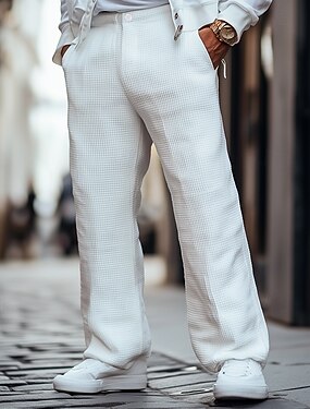 Homens Calças Social Calças largas Calças de Terno Calça Waffle Bolso frontal Perna reta Tecido Conforto Respirável Comprimento total Casamento O negócio Diário Moda Roupa de rua Preto Branco Sem