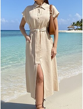Mulheres Vestido midi Vestido da bainha Férias Casual Boho Diário Feriado Normal Tecido Manga Longa Lapela Azul Vermelho Castanho Claro Marron Primavera Outono