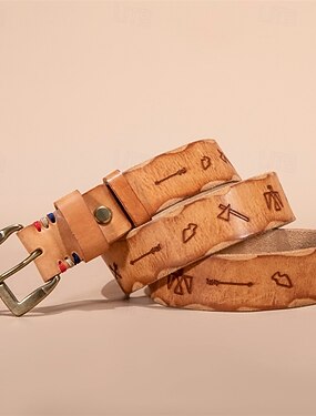Homens Cinto de couro genuíno Cinto Fivela de pino Borda Ondulada Cobre Derme Vintage Durável Ajustável Tecido Azul Preto Ao ar livre Diário Cinto para a Cintura