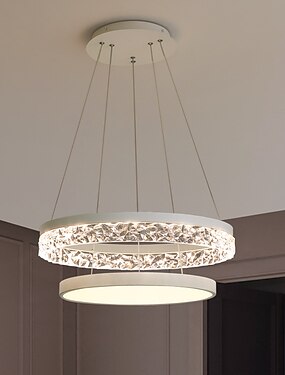 anel de luz pingente de led design de círculo 2 anéis 40 + 60cm lustres modernos de acrílico ajustável 3000k estilo contemporâneo moderno cozinha jantar casa bar luz 110-120v 220-240v branco quente