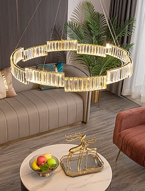 60+80 cm cristal pingente de luz led candelabro anel metal galvanizado país moderno 220-240v