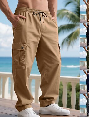 Homens Calças de linho Calças Calça verão Com Cordão Cintura elástica Perna reta Côr Sólida Tecido Conforto Respirável Comprimento total Ao ar livre Casual Diário Férias Moda Branco Marron Sem