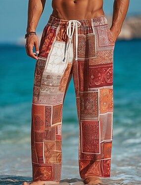 Homens Geométrica Bloco de cor Retalhos Calças Calça casual Cintura Média Cintura elástica com cordão Vintage retrô Ao ar livre Férias Calças de perna reta Verão Primavera Outono Impressão 3D Caqui