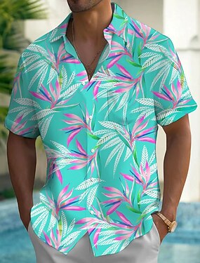Homens Plantas Folha Tropical Camisa havaiana camisa de botão Camiseta Aloha Manga Curta Havaiana Casual Férias Verão Primavera Aberto para a Lateral Impressão 3D camisas de colarinho Um bolso frontal