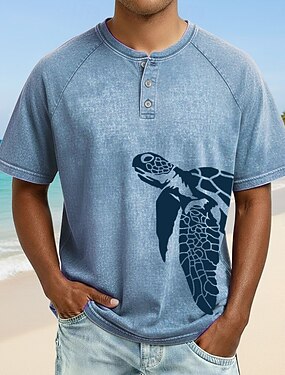 Homens Tribal Camiseta Camisa Henley Camisetas Manga Curta Designer Básico Boêmio Ao ar livre Casual Diário Verão Azul Lago Verde Claro Azul Claro cáqui Henley Camiseta Henley