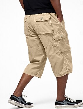 Homens Calças de carga Bermuda Cargo Calção Shorts casuais Bolsos Cintura elástica Tecido Comprimento da panturrilha Casual Ao ar livre Streetwear Moda Roupa de rua Preto Cáqui Sem Elasticidade