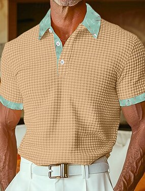 Homens Textura Camisa de golfe O negócio Casual Clássico Manga Curta Moda Moderno Côr Sólida Havaí Botões Verão Primavera Normal Preto Branco Verde cáqui Textura