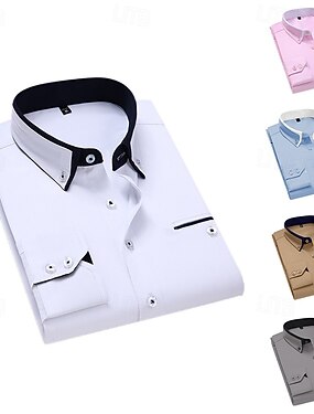 Homens Saia camisa de botão camisa de colarinho Camisa não de ferro Tecido Casamento Trabalho Branco Rosa Azul Marinha Azul Real Manga Longa Colarinho Todas as Estações Roupa
