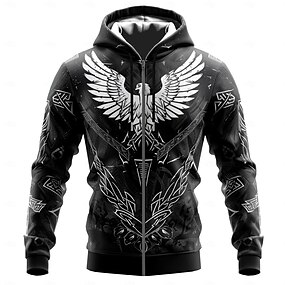 Homens 3D impressão Asas celtas Moletom Jaqueta Viking 3D Fantasia. Impressão completa Manga Longa Com Zíper Streetwear Férias Para Noite Preto Branco Zíper Outono Inverno Designer S M L XL XXL XXXL