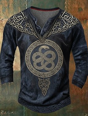 Homens Cobra Viking Camisa Henley T-shirt Manga Longa Vintage Moda Viking Casual Feriado Para Noite Outono Primavera & Outono Cinzento Escuro Azul Marinha Henley Camiseta Henley