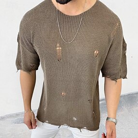 Homens Pulôver suéter Suéter de malha Estriado Tricotar Tops regulares Tricotado Buraco Tecido Gola Redonda Moda Básico Férias Roupa Diária Roupa Verão Preto Branco M L XL