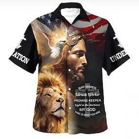 Camisa Letra Cruz da Bandeira Americana para o Dia da Independência Camisa de Botão Camisa de Manga Curta Moda Moda de Rua Designer Uso Diário Saídas de Fim de Semana Verão e Primavera com Golinha