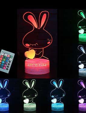 Luzes de coelho de páscoa 3d ilusão lâmpadas 16 cores mesa de toque de mudança de cor led luz noturna ótimos presentes para crianças