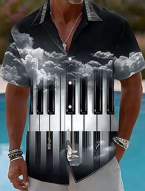Homens Piano Notas musicais Camisa Social camisa de verão camisa de botão Manga Curta Moda Casual Diário Festival de Música Verão Primavera Aberto para a Lateral Impressão 3D camisas de colarinho Um