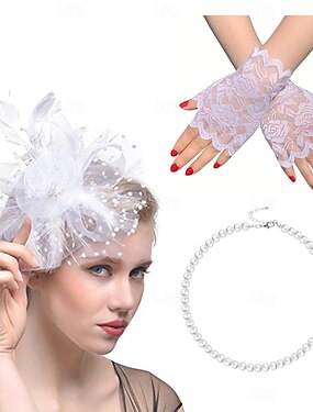 Conjunto Derby Luvas Peça para Cabeça Colar com acessórios Fantasia Mulheres Baile de Máscaras Casamento Plastrão Festival de Corridas de Cavalos Adulto Peça para Cabeça Luvas Brincos Todas as