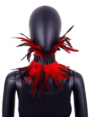 Carnaval 2026 - Acessórios de Samba do Carnaval do Rio - Colar Choker de Pena Vermelha Feminina Colar de Fantasia de Vampiro Gótico