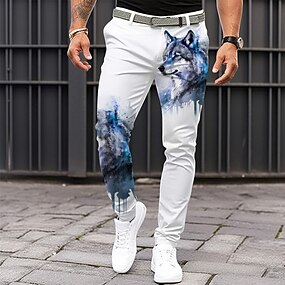 Homens Lobo Social Cintura Média Casual Formal Dia a Dia Zíper Bolsos Verão Primavera Outono Impressão 3D Preto Branco Amarelo