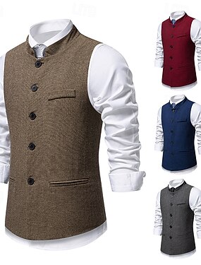 Retro Vintage Loucos anos 20 Anos 20 Colete Sem Mangas O Grande Gatsby Cavalheiro Mafioso Padrinho Fivela Côr Sólida Fantasia Homens Dia Das Bruxas Carnaval Baile de Máscaras Casamento Convidado do