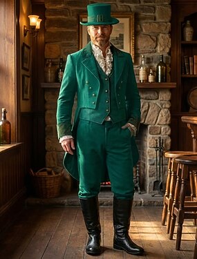 São Patrício 2026 Punk e gótico Medieval Casaco Jaqueta Tailcoat Manga Comprida Príncipe Elfo Nobre Paetês Fantasia Homens Real Steampunk Dia Das Bruxas Carnaval Baile de Máscaras Festa / Eventos