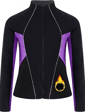 Jaqueta de lã para patinação artística Mulheres Para Meninas Patinação no Gelo Jaqueta Blusas Preto Patchwork Elastano Com Stretch Treino Competição Roupa para Patinação Térmico / Quente Clássico