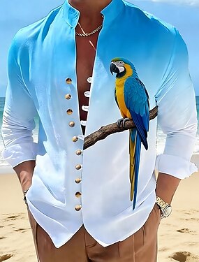 Homens Pássaro Papagaio Cor gradiente Camisas havaianas Camiseta Aloha Camisa de gola alta Manga Longa Havaiana Casual / Diário férias na praia Verão Primavera Colarinho Mandarim Faixa Impressão 3D