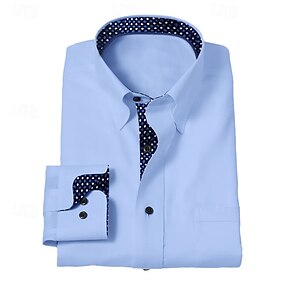 Homens Saia Camisa não de ferro Tecido Casamento Trabalho Azul Claro Branco Manga Longa Colarinho Italiano Verão Primavera Roupa