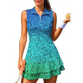 Mulheres Gradiente Zebra Vestido de tênis Vestido esportivo Sem Manga Floral Respirável Tênis Golfe Badminton Colarinho polo Gola com zíper Calção Vestidos Azul Roupas de tênis